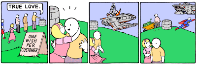 If you're feeling a bit cynical and want to stay in the mood, but be cheered up at the same time, try a couple of cartoon strips from The Perry Bible Fellowship, these artists have truly got it going on. Either see their work weekly in the Guardian G2 supplement (Fridays?) or on line at http://www.pbfcomics.com/.